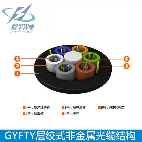 非金属光缆是指不带金属的光缆,多用于强电区或是多雷区。常用型号GYFTY光缆非金属光缆比较常用的型号有1.GYFXY或是JET中心束管式非金属光缆2.GYFTY层绞式非金属光缆3.ADSS全介质自承式光缆什么是GYFTY层绞式非金属光缆GYFTY光缆的结构是将250μm光纤套入高模量材料制成的松套管中,松套管内填充防水化合物。缆芯的中心是一根
