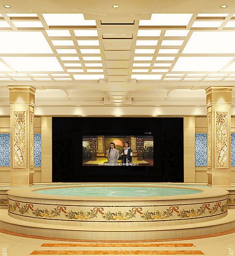 同时,洗浴中心的镜面电视也可以成为浴场的装饰品,可以将它内嵌在墙壁上,如