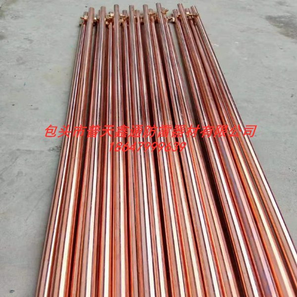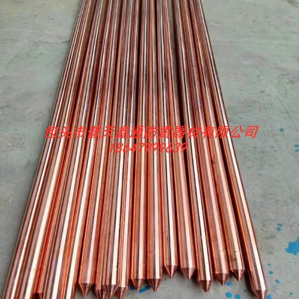 圆钢表面,厚度在0.25-0.5mm,该工艺可以有效的减缓接地棒在地下氧化的速度,此接地棒可分为单根的和组合的两种,单根的可以一头尖一头平,可以一头尖一头轧辊上螺纹,组合的两头需要轧辊上螺纹,螺纹是采用轧辊螺纹槽加工螺纹,保持了钢与铜之间紧密连接,确保高强度,具备优良的电气接地性能。