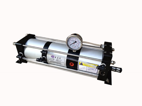 气体增压泵为压力源,采用纯净空气作为被增压介质,输出空气气体压力与驱动气源压力成比例。通过对驱动气源压力的调整,便能得到相应的增压后的空气气体压力。当驱动气源压力与增压后的空气气体压力达到平衡时,气动增压泵便停止增压,输出空气气体压力也就稳定在预调的压力上。因而具有防爆、节能、环保、输出压力可调、体积小、重量轻、操作简单、性能可靠、适用范围广等特点。