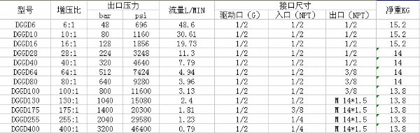 DGGD液体增压泵:采用单气控非平衡气体平衡气体分配阀来实现泵的自动往复运动,泵体气驱部分全部采用铝合金制造,铝合金零部件加工后经氧化处理成黑色,保证了产品的外 型美观及**生锈。泵的全套密封件均为进口优质产品,从而保证了泵的性能,驱动活塞直径为160mm。