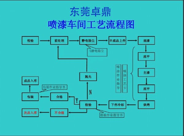 工艺流程:上件区→手动除尘→静电除尘→手动喷涂→烘干区→UV漆固化区→冷却区→丝印区→品检区→收件区。
