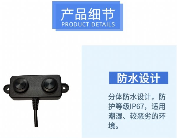 - 模组采用封闭式分体防水探头结合防水外壳,防护等级可达IP67,适用不同的环境。