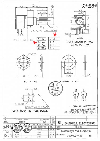 RA09双联电位器特点:采用塑封式结构,可有效应对
