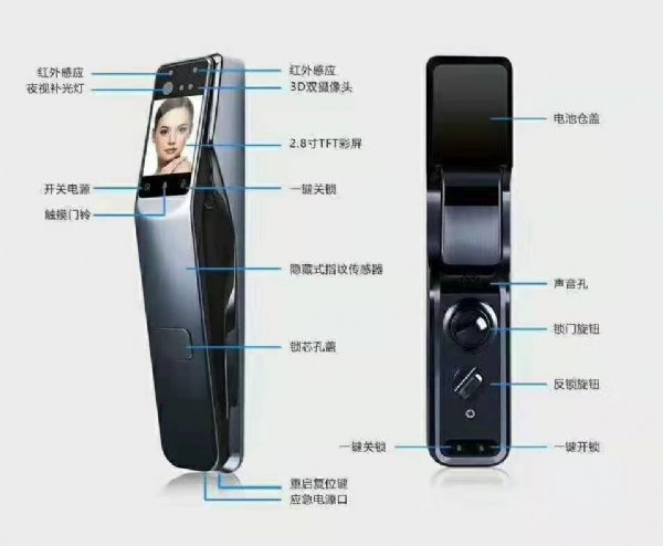 。功能:人体感应,人脸识别,密码,刷卡,钥匙 门铃,手机APP .有三种颜色参考。