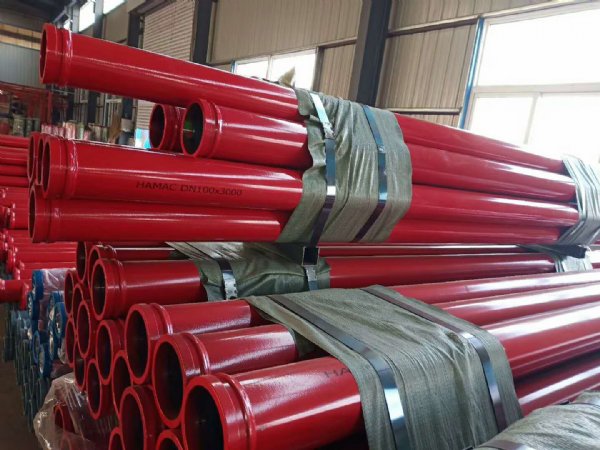 泵管厂家专业生产泵车耐磨泵管,地泵管分别为高压地泵管于低压地泵管,型号分为DN125于DN150两种,用于混凝土拖泵车和车载泵泵车简称地泵管,采用优质碳钢为原材料,具有耐磨性强,使用寿命长等特点;天泵耐磨泵管分为单层加厚泵管和双层耐磨泵管,单层耐磨泵管采用锰钢加工制造,材质较硬使用寿命较长,壁厚有5mm,5.5mm等,双层耐磨泵管外层20#无缝钢内胆耐磨600-1,内部经高温淬火工艺,使用寿命更长,内壁采用螺旋纹设计,可有效预防堵管爆管的发生,为顾客减少开资节约了成本,使用寿命是普通泵管的3-5倍,一经上市供不应求。