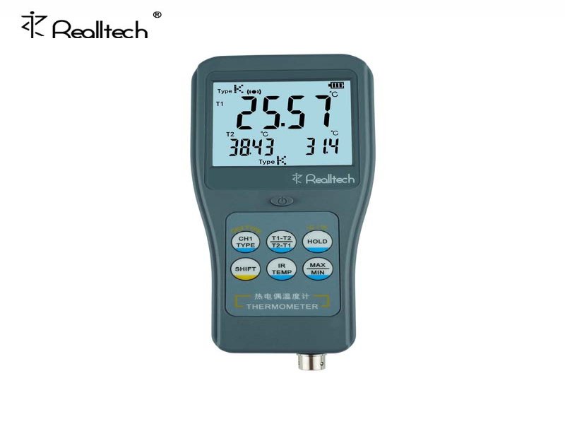 传感器测量温度信号的双通道红外热电偶温度计。大屏幕显示,操作简便,可直接测量各种生产过程中的液体、蒸气和气体介质以及固体表面测温,也可选择红外配件进行温度测量。且有多种热电偶种类可供选择,广泛应用于工业生产、研发实验、质量控制、冷藏存储、汽车制造等多种场合。