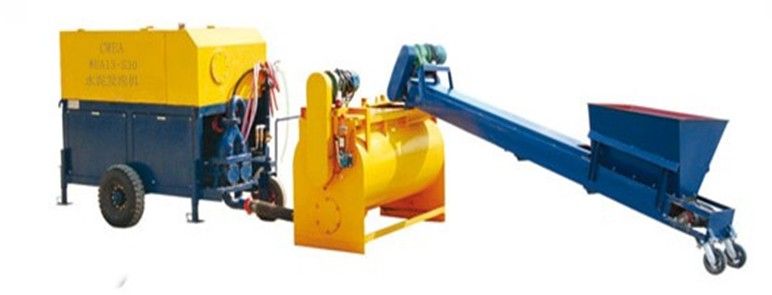 WEA13大型水泥发泡机把水泥和水在搅拌斗内按一定比例搅拌成水泥浆,通过液压输送缸压送到