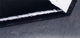 5、排出卷材下方的空气,同时将相邻卷材的搭接边粘贴牢固(搭接宽度为60mm)。