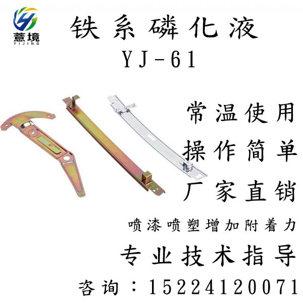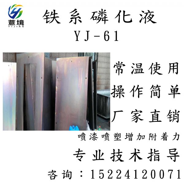磷化液应用说明:本品系常温条件下使用的钢铁表面涂装前的铁系磷化液,磷化成膜时间短、处理温度低、操作工艺范围宽,磷化膜呈蓝色至彩虹色,且无挂灰或挂灰甚少,浸渍、喷淋、超声波清洗、擦洗均可,适用于汽车、摩托车、自行车、仪器仪表、家具家用电器、五金饰品及工具等行业的钢铁工件电泳、喷塑、喷漆等涂装前的表面磷化处理。