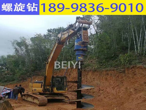 挖掘机钻孔机是当代林地植树、荒漠绿化、围篱工程、道路工程管理风景园林管护、葡萄园建设等的理想机具。挖掘机钻孔机充分实现了一机多用的功能,大大提高了实用性。挖掘机钻孔机主要由驱动头和钻头组件构成,驱动头与钻头组件固定连接,钻头组件包括钻杆、包绕着钻杆的螺旋叶片、以及设置在钻杆末端的钻头,所述的螺旋叶片的底端设置有钻齿。由一人操作,作业中人不下机,通过操纵杆掌握钻挖头的起落,浮动以及钻挖深度。高效: