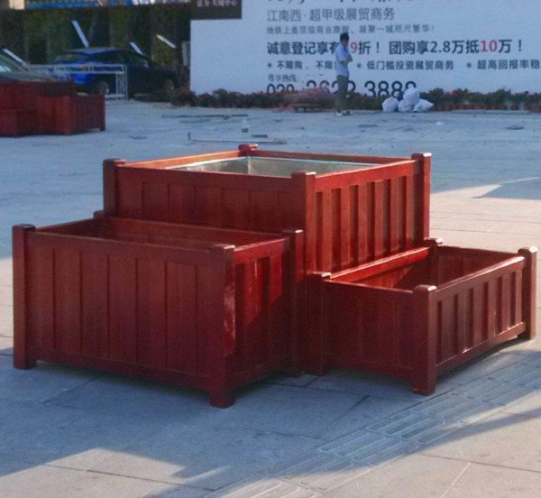 玻璃钢(树脂)、铝架+仿藤。其中防腐木应用*广,其板材通过防腐处理不惧风吹日晒、雨淋、浸泡,避免了传统木花盆的开裂、变形、老化等现象。常常用在道路、公园、酒店户外、小区、广场、校园、车站、商场、私家别墅、度假村、市政、社区街道、屋顶花园、旅游景区、行道绿化带、立交桥、阳台、商业街等公共场所。