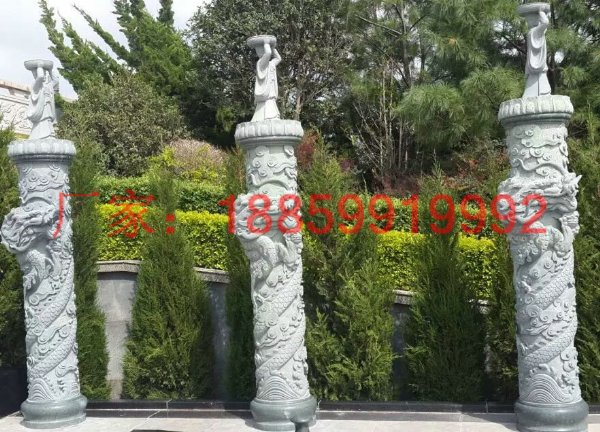 龙身环绕柱身一圈,龙尾在上,龙头在下,取其从天而降之气势,龙头上昂,龙爪握珠。一柱一龙又可分:柱身纯雕龙形,其间*多配以白云。柱身础亦搭配了各种的水族图案、雕刻精巧,但艺术水平却较低落。台湾庙龙柱的发展,除了其形式由简朴而繁琐外;在运用上,也演变到毫无规制的泛滥。许多庙宇更以龙柱之多寡以取胜,而不考虑其空间的安排及视觉上审美的效果,徒为夸示炫耀之目的,丧失了龙柱在庙宇中之意义和价值。
