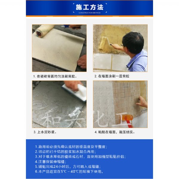 建筑石材领域中用于大规格瓷砖及石材背涂,其目的即达到湿法粘贴石材时防止碱性水泥