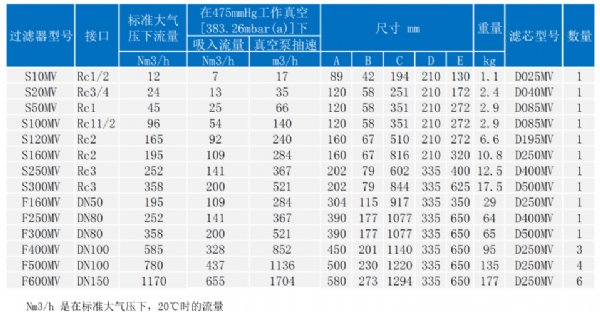 过滤器的型号:S10MV、S20MV、S50MV、S100MV、S120MV、S160MV、S250MV、S300MV、F160MV、F250MV、F300MV、F400MV、F500MV、F600MV