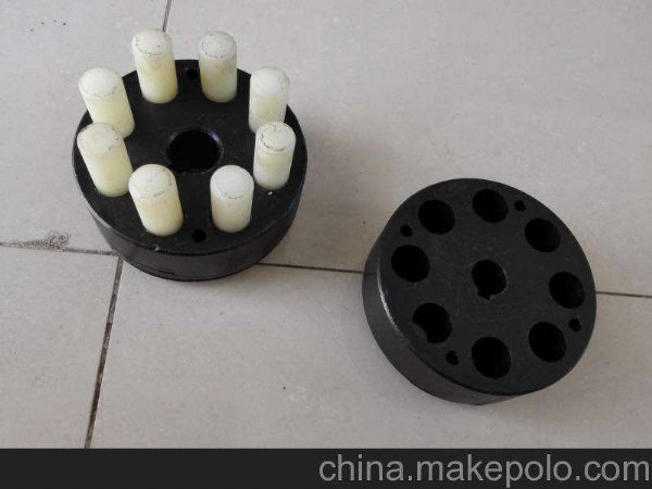 弹性元件(柱销)的材料一般选用尼龙,有微量补偿两轴线偏移能力,弹性件工作时受剪切,工作可靠性极差,仅适用于要求很低的中速传动轴系,不适用于作可