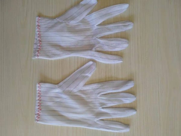 防静电手套采用特种防静电绦纶布制作,基材由绦纶和导电纤维组成,导电 纤维间距为4mm,5mm 或者10mm, 手套具有很好的弹性和防静电性能,避免人体产生的静电对产品造成破坏,它适合在电子行业、半导体、