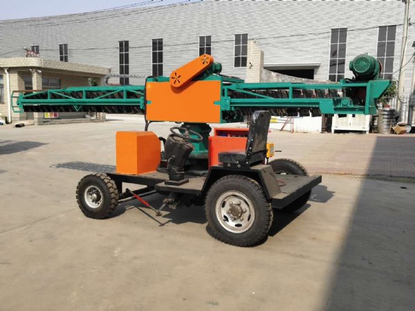 电机减速机带动中间轴,通过链轮、链条使卸车部分伸缩,便于卸车。不用时把卸车部分缩回,方便于运输与存放;当作业时把卸车部分伸出,到达车厢内部即可进行卸车作业。注:(卸车作业时请勿把扒谷部分掉转方向,以免造成危险,扒谷部分应转到底盘窄面)、卸车升降与旋转机构:由转