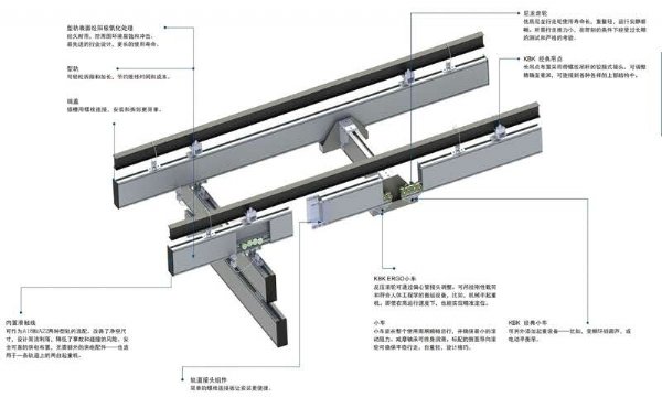 由KBK规范组件构成的悬挂式单轨吊优地完成了物料的线性空中运