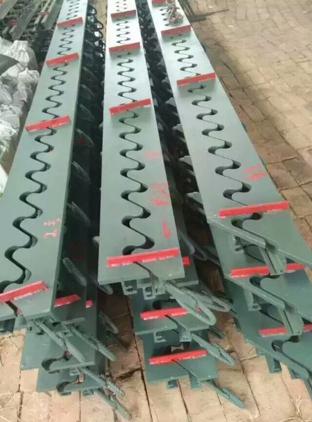 油漆。用胶粘纸带或木板密封伸缩缝顶面缝口,在槽口部位即浇筑50号混凝土;用插入式振动棒,充分振捣密实。抹平混凝土过度段表面。用直尺检查伸缩缝顶面、过度段,应尽量与路面平顺。做好混凝土养生后方可通车。带有防撞墙,人行道结构的伸缩缝,参造上述安装工序作业。