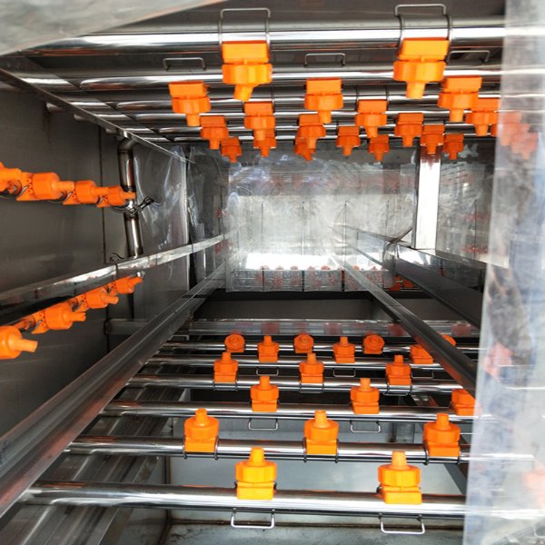 输送带或悬挂线送入待清洗的工件,经过一定的程序,完成工件的除油、清洗、烘干、然后由输送带自动送出。该清洗线具有设计合理、工效及自动化程度高等特点,是金属器皿、五金电器生产厂家理想的
