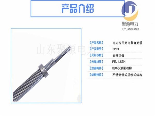 简介:OPGW光缆(也称光纤复合架空地线),把光纤放置在架空高压输电线的地线中,用以构成输电线路上的光纤通信网,这种结构形式谦具地线与通信双重功能,一般称作为OPGW光缆。250μm光纤套入高模量材质制成的松套管中,松套管内填充防水化合物。松套管外用一层双面涂塑