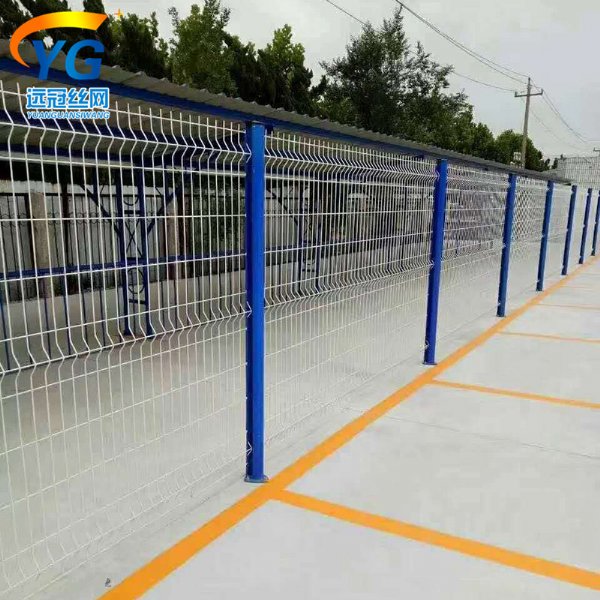 白蓝红绿桃型柱护栏网 厂区桃型柱铁丝隔离护栏网 防腐抗晒