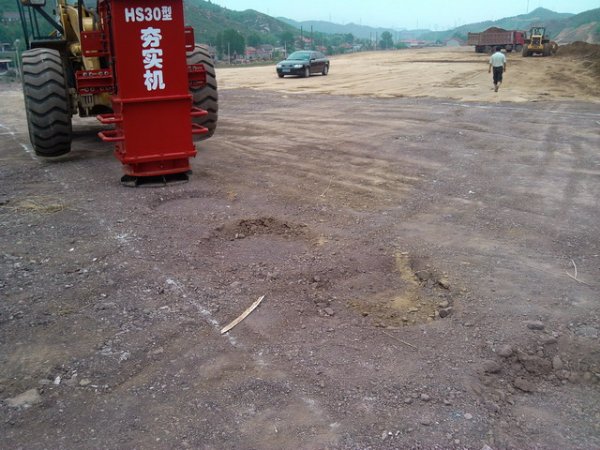 1、设备要求 要求采用带缓冲垫和夯板的液压夯实机,单击夯实能量不低于30kJ。移动设备选用50以上装载机或大型挖掘机