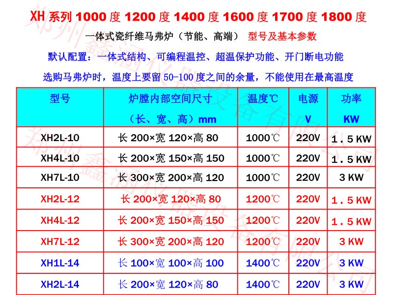 2、配置:鑫涵仪器1000度陶瓷纤维马弗炉XH2L-10,加热丝采用含钼合金电阻丝材料。陶瓷纤维马弗炉加热温度均匀、升温速度快。陶瓷纤维马弗炉是普通马弗炉能耗的40%左右,不掉粉尘、不掉渣不会影响做试验的效果。