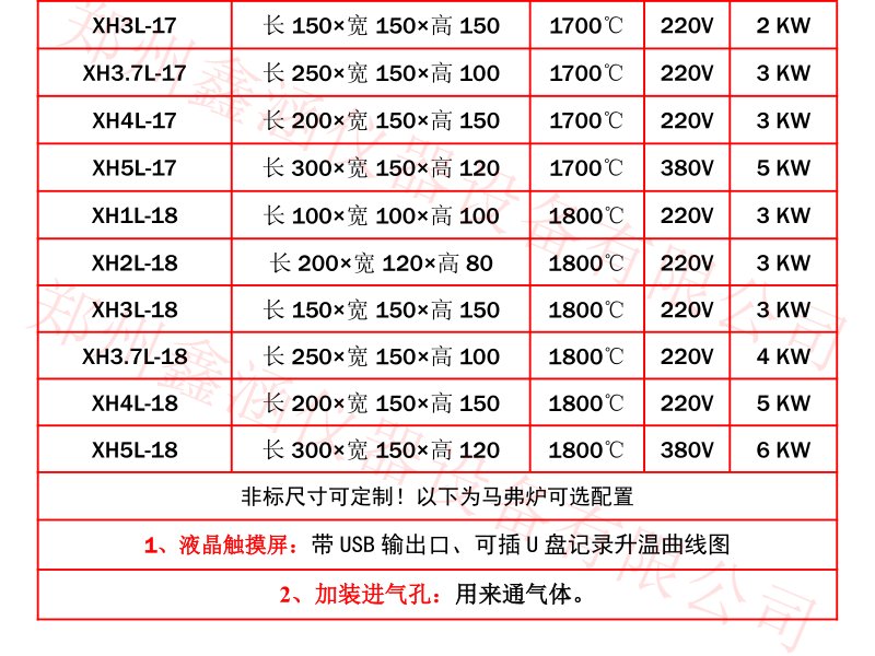 炉膛尺寸: 200*120*80 mm(长、宽、高)
