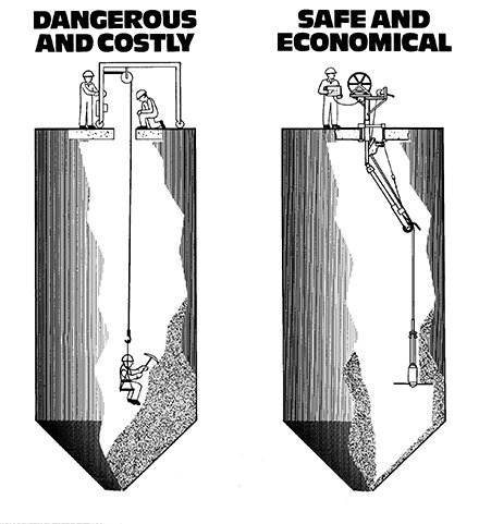 广州泰恩公司研发了筒仓清理系统。该旋转鞭独特的设计使设备可以从筒仓顶部操作,消除进入密闭空间涉及的人身安全危害。便携式的清仓设备帮助您安全地回收有价值的库存物料,使您可以得到更多的产品。