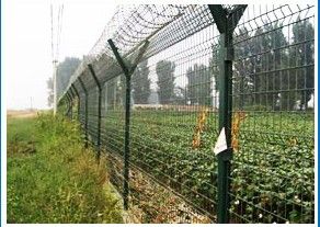 ,有效防止人为的破坏性拆卸,横向四道折弯加强筋,使网面强度显著增加。 本产品具有美观,大方,防腐性好,易保养,防攀爬能力强。主要适用于机场周围的隔离防护美化及防翻越工程。