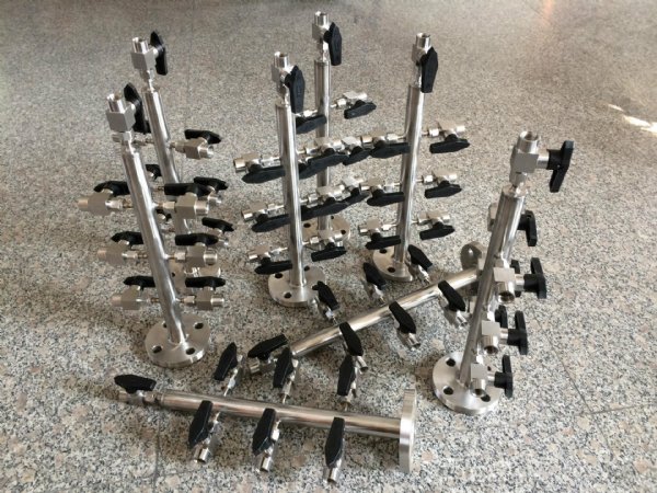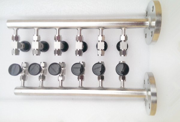 分配器是现场分散安装气动仪表与仪表空气总管相连接的中间桥架,该系列产品有KGQ-I型,KFQ-II型,KFQ-III型三种结构形式。