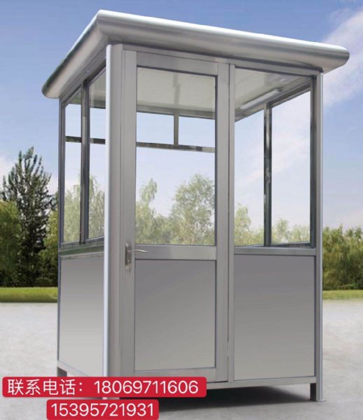 4、岗亭采用铝合金窗户,玻璃为5mm钢化玻璃;门采用不锈钢玻璃门自制