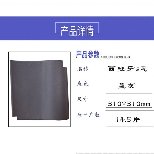 平板瓦,德式莱茵脊瓦,法式纪梵尼瓦,日式和瓦,中式青瓦以及古建瓦等多种适合多种建筑风格的屋面瓦。光阳建材制造生产的屋面瓦不仅仅种类齐全在质量和色彩各方面都处于行业*。生产的产品畅销全国受到各地消费者的青睐