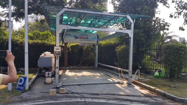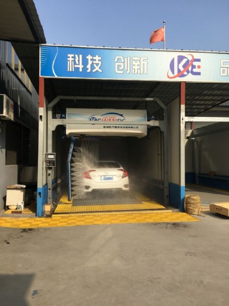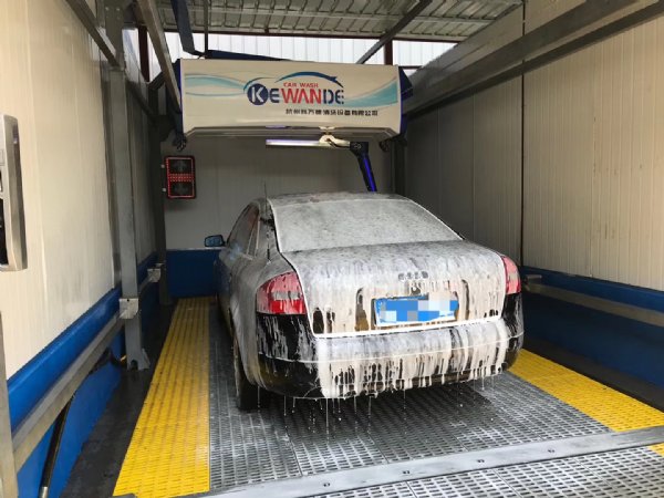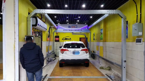 4.车辆进入洗车机,语音提示器提示停车到位,即可开始洗车