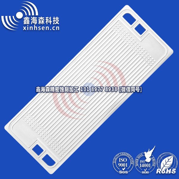 微通道冷板,是由若干层表面无毛刺、无凹凸不平状态的不同厚度金属薄板经过蚀刻加工后,在真空状态下施加适当的压力,给予适当的温度,经过合理的时间结合而成的。金属表面之间结合后形成蜂窝状的截面可使高压流体通过微通道时无泄露,连接后的产品抗拉强度不低于原板材的抗拉强度。微通道