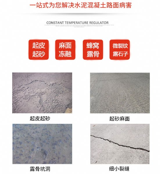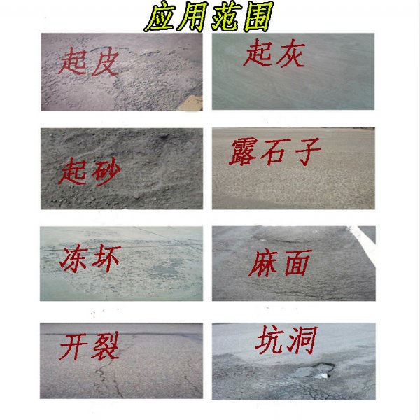 护砼1号主要应用于:水泥路面的蜂窝麻面、水泥路面起皮、水泥路面起砂、水泥路面冻融盐蚀、水泥路面露骨、水泥路面细小裂纹等表层病害。