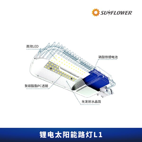节能型锂电智能6-8米30W太阳能LED路灯L1