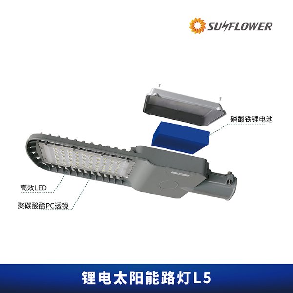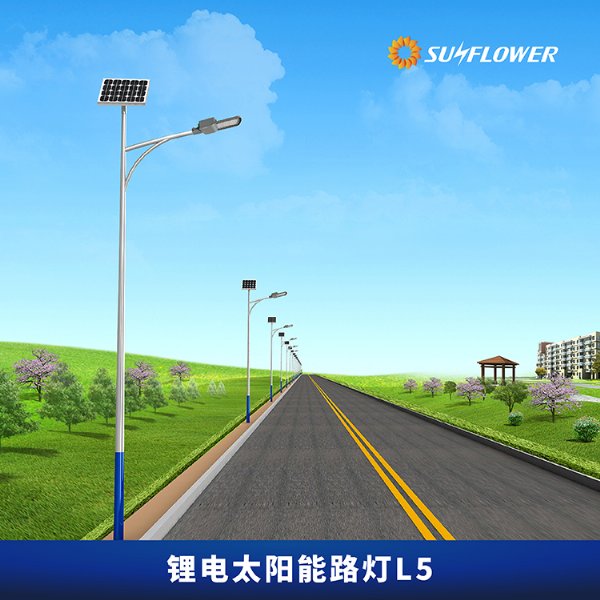 锂电池5-6米20W太阳能LED路灯L5道路亮化向日葵经典**款