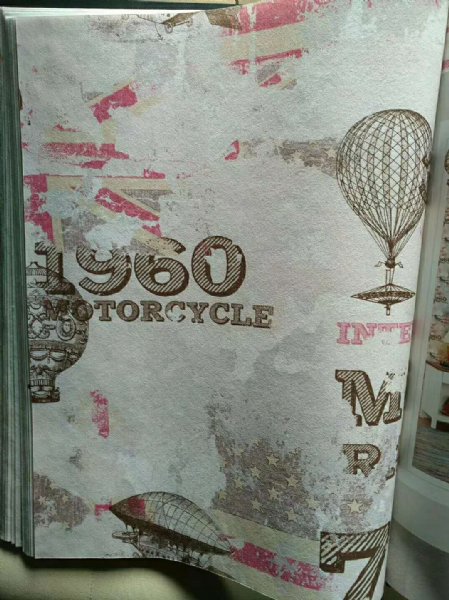 壁布”。裱糊墙面的织物。用棉布为底布,并在底布上施以印花或轧纹浮雕,也有以大提花织成。所用纹样多为几何图形和花卉图案。