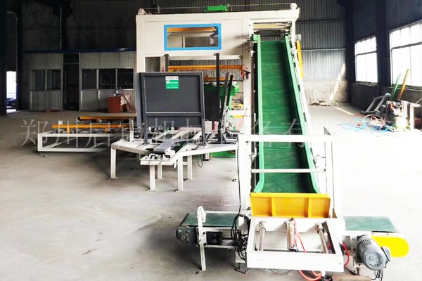 托盘、栈板(木质、塑胶)上,进行自动堆码,可堆码多层,然后推出,便于