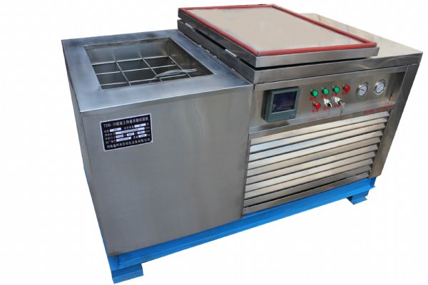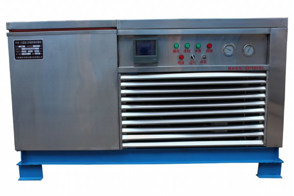 电加热器,蒸发器,冻融循环泵摆放在加一台金属箱体中,上述两箱体与冻融试验同置于一个公共底座上,构成机组整体,出厂前进行了严格试车和检验,培训人员安装完管路、接通好电路即可使用。