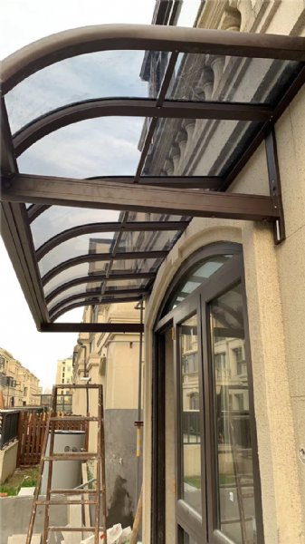 雨棚应用非常广泛,小区私人住宅,别墅洋房都遍布着铝合金雨棚的身影,亏功于铝合金结构坚固耐用30年不生锈。顶部的