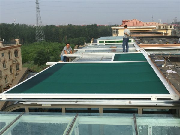 天津FSS天棚帘 电动蜂巢帘 户外天幕帘 电动折叠式天棚帘