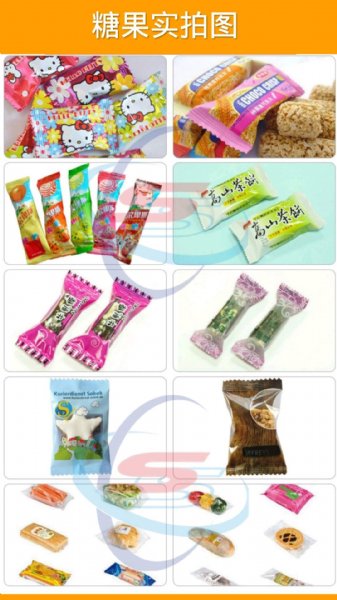 ,可以包糖果、巧克力、红糖块、营养膏、饼干、糕点等食品,适用于以上产品的生产厂家。