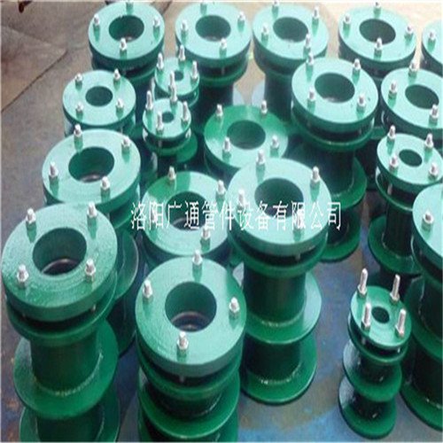 广通管件柔性密闭套管是为了解决有些地下工程需要管路穿墙而过,而通过处又有严密防水要求;还有些构筑物也需要管路穿墙而过,同时又限制管路不能因温度变化或外力产生伸缩和位移,更不允许管路在外在因素作用下产生振动而设计制作的。它的外壳一次性浇注在墙壁上,管子从套管中间通过,管子外径与套管中间用