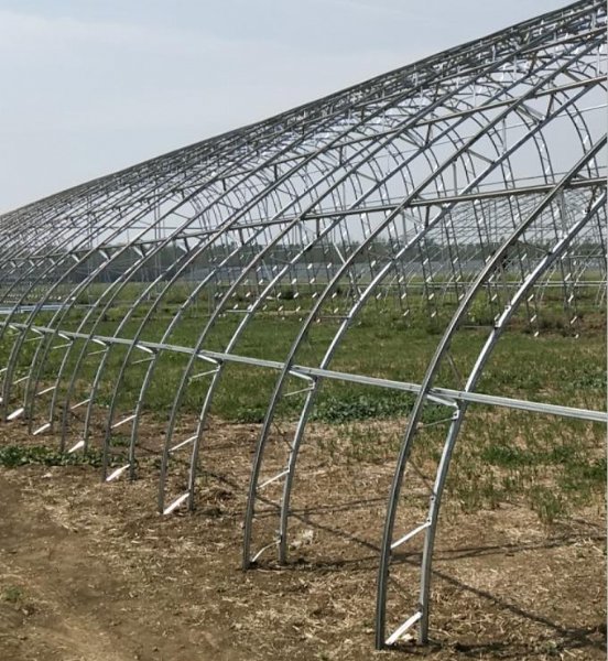 大棚骨架用于支撑大棚整体重量的核心支架,完全采用内外弦和中间用连接片的结构方式,可以用作大跨度拱棚,暖棚使用,棚内用于种植草莓,樱桃,高经济作物,这种结构用