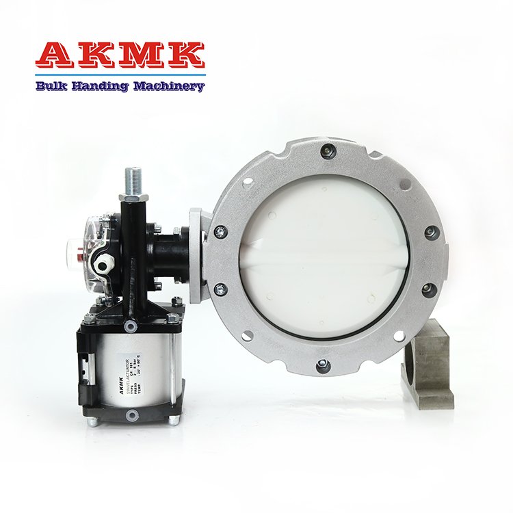 /气动粉尘蝶阀由两个采用重力浇铸而成的半阀体组成,阀体具有良好的密封性。顶部及底部相同的圆