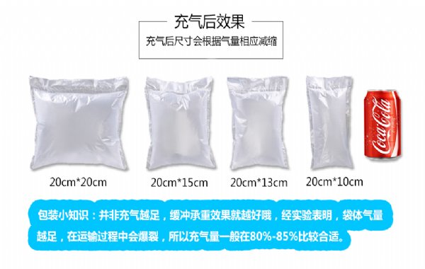 3、缓冲填充:平面静压强度填充袋可承受高达65KG以上,葫芦膜可承受80KG以上;